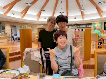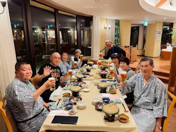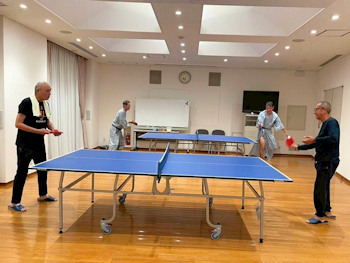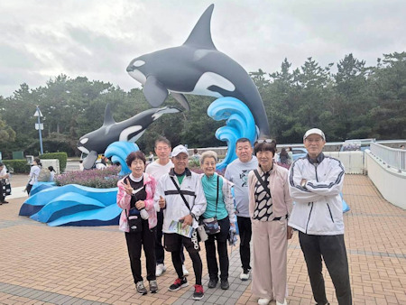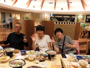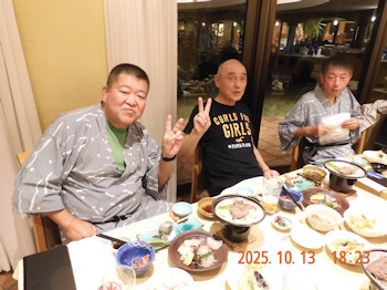 | 2025/10/13-14 テニス愛好会合宿 10月13日(月)7:00南パーク出発、 先週の台風22号に続き23号も予報では房総半島沖をかすめる模様である。(図) 市原 ICまではどんより曇り空、その後大喜多街道を「道の駅たけゆら」に向かう内に空が泣き出した。台風が近づきつつあり影響が出始めた。 9時「道の駅たけゆら」に到着時は本降りとなった。降りしきる中10時からのテニスプレーを信じコートヘ向かった。しかし、コートには水たまり雨は容赦なく降り注ぐ、万事休す全員空お仰いで台風を怨む。午前中も午後も見通しは暗く本日のテニスを諦め、早めの昼食を済まし急遽「鴨川シーワールド」詣でとなった。 夜は、楽しい夕食と久し振りの卓球に興じ、二次会で予定していた反省会用のビデオは無の宴となった。 翌日は、晴とはならなかったが20度前後のテニス日和、昨日の雨を考慮し9時開始とした。練習もそこそこに試合開始、ダブルスで個人得点を競う10ゲーム(1人5試合)を行なった。 試合後は、昼食を兼ねた初めての温泉(勝浦つるんつるん温泉)で大いに疲れをいやした。今回の合宿は多々異色の展開であったが楽しいイベントとなった。 |