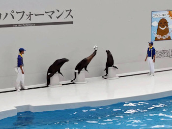| 入口のシャチモニュメント | アシカショウ | シャチパフォーマンス |