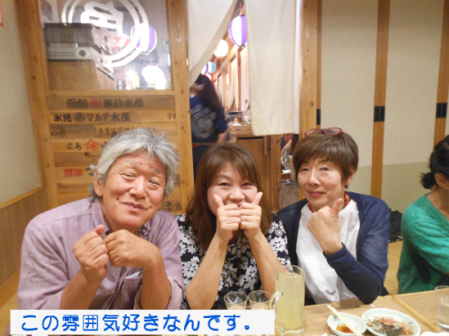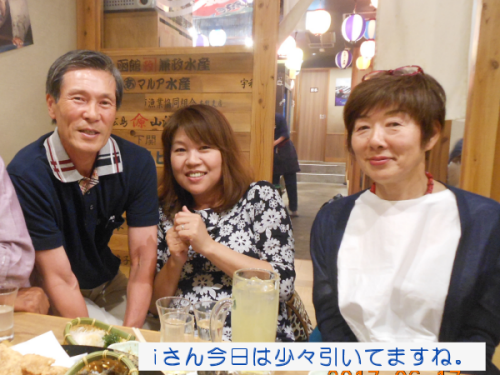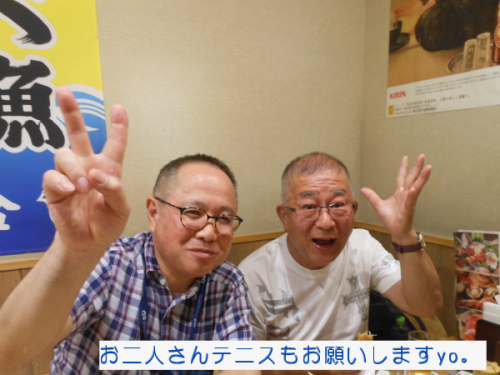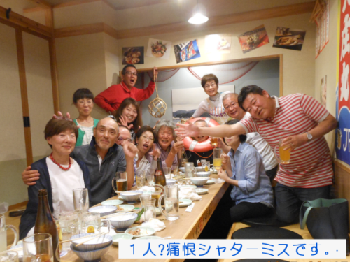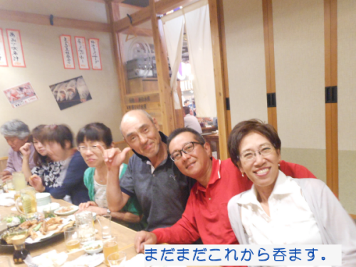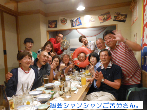 | <テニス愛好会 2017年総会> 2016年度総会が6月17日(土) 18:00から開かれた。 今回は、昨年と異なり居酒屋「大庄水産」に場所を変え行った。集会所とは雰囲気が大きく違ったが、これもありかなと胸をなでおろした次第です。 議題は、@2016年度会計報告、A役員の改選(会計)Bその他。会計については、年度収支Δ5300の赤字決算となった。正会員の減少が主要因と思われる。尚、繰り越し金があり月会費は現状のままとした。 会計役員は、会員一致で金谷さんが選任された。園遊会の焼そば販売については今年も愛好会で行う事を確認。 以上承認されました。 以降、懇親会の幕開けです。三木さんの計らいで今回は飲み放題付きです。皆さん予算を気にせず呑んで食べて楽しみました。 |